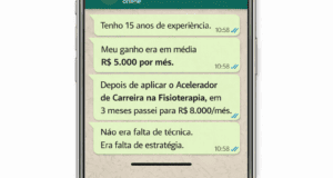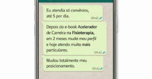 Esse mesmo método já vem sendo utilizado para ajudar fisioterapeutas a organizarem suas carreiras, aumentarem seu faturamento e tomarem decisões muito mais inteligentes sobre preço, posicionamento e crescimento profissional.